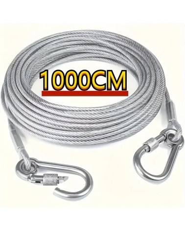 Robustes Multifunktionskabel mit Edelstahldraht von 2 mm Durchmesser, doppelt gecrimpt für stärkere Enden. Ultra stark und langlebig für Ihren Campingurlaub, kann aber auch als Leine für Ihr Haustier verwendet werden.
