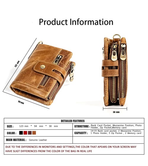 Herrengeldbörse mit Anti-Diebstahl-Kette für optimale Sicherheit, Privatsphäre und Schutz. Die aus echtem Leder gefertigte Brieftasche bietet eine große Kapazität für bis zu 14 Karten, 1 Geldscheinfach, 3 Reißverschlussfächer und verfügt sogar über eine RFID-Sperrtechnologie, um Ihre persönlichen Daten vor Diebstahl zu schützen. Darüber hinaus ermöglicht das Identifikationsfenster einen schnellen und einfachen Zugriff auf Ihre Ausweispapiere. Das Portemonnaie enthält außerdem eine langlebige und elegante Kette, damit Sie es jederzeit sicher bei sich tragen können. Mit ihrem eleganten Design mit zwei Klappen und Reißverschluss ist diese Brieftasche perfekt für jeden Mann, der ein praktisches und stilvolles Accessoire sucht.