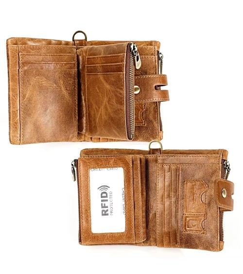 Herrenbrieftasche - Echtleder - diebstahlsichere Kette - Vintage-Stil