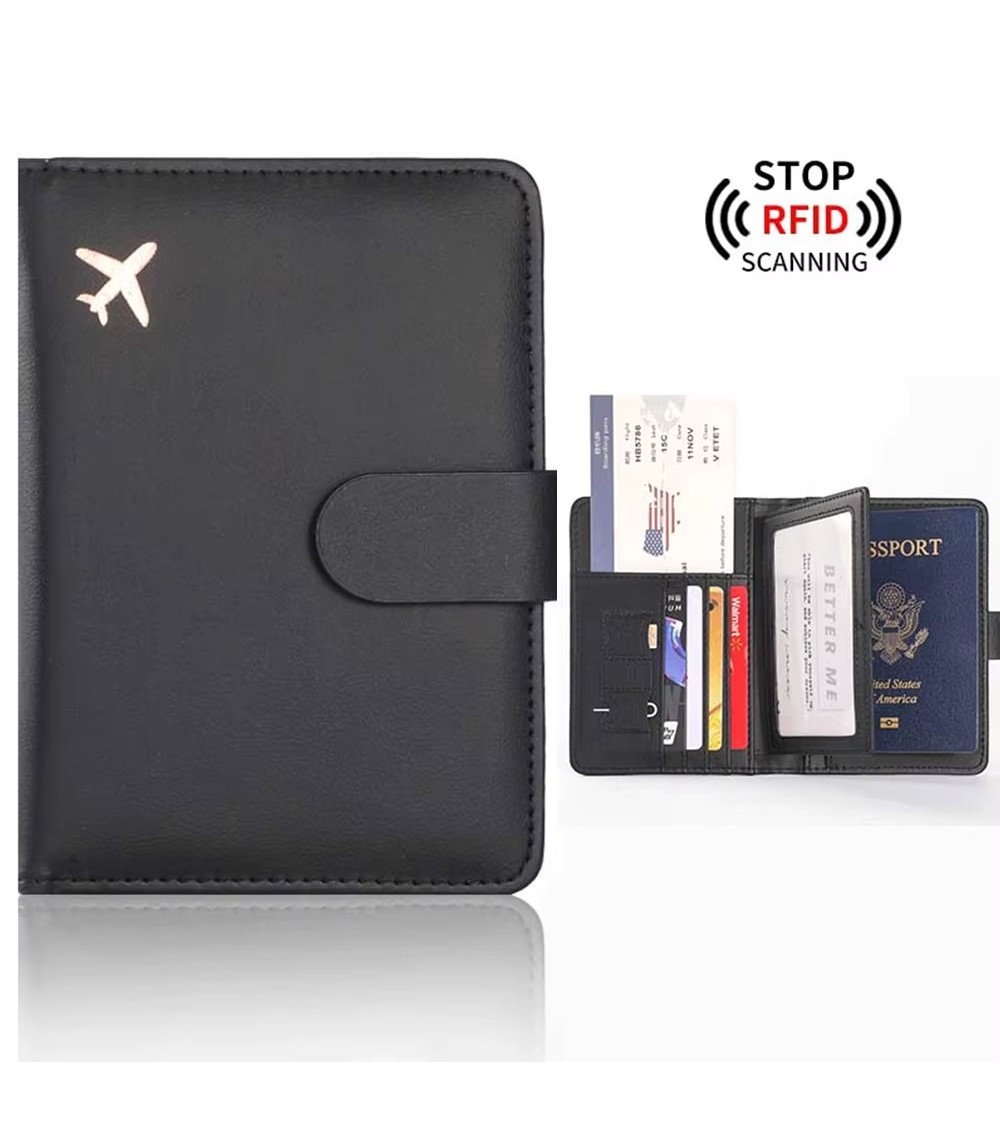 PU-Leder-Reisepass - Brieftasche - RFID/NFC-Sperre - Schwarz