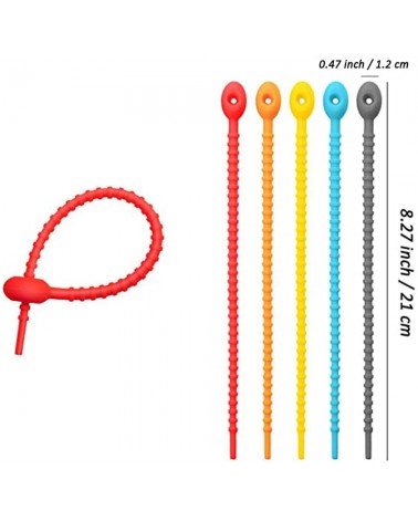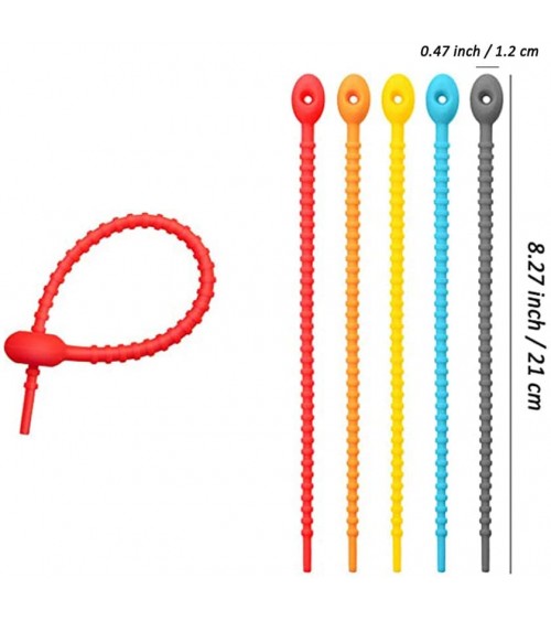 Langlebiges und sicheres Material: Hergestellt aus hochwertigem, lebensmittelechtem Silikon. Länge: 21 cm. Die Silikonstreifen können schnell geknotet werden, gute Isolierung, selbstschließender Verschluss, einfach zu verwenden. Wiederverwendbare Außenstreifen aus weichem Gummi. Die Vollsilikonkonstruktion macht die Kabelbinder flexibel für eine schnelle und einfache Verwendung.
