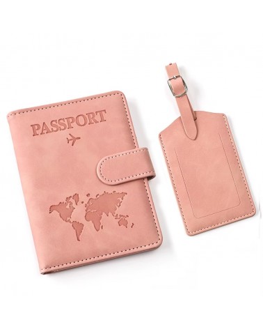 Elegant Leather Passport Wallet - Luggage Tags - Pink