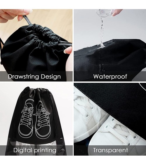 The drawstring design is easy to open and close, helping you to keep it clean and tidy and prevent dust and wear. Protects your shoes from scratches and dirt when packing, keeps your shoes organized and dust-free in the closet.