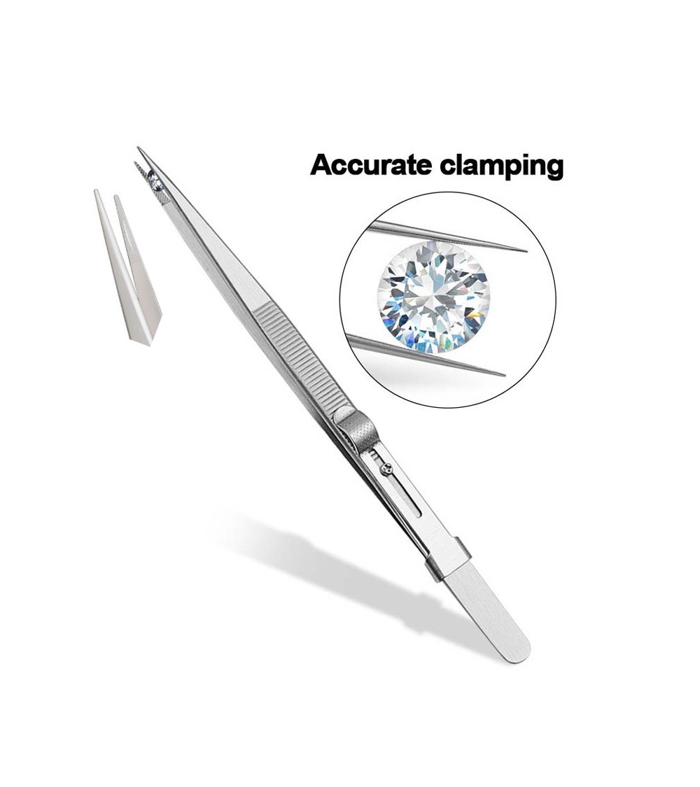 Made from durable, non-magnetic stainless steel, it enables long-term, fatigue-free use. The practical design includes a gem compartment and locking mechanism for added convenience, making it ideal for jewelry making, watch repair and quality inspections.