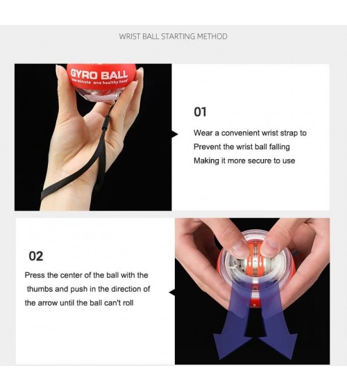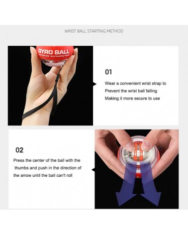 Comment l'utiliser : Une fois que la balle est mise en mouvement, la résistance peut être augmentée en la tenant fermement dans la main et en effectuant des mouvements circulaires rapides.