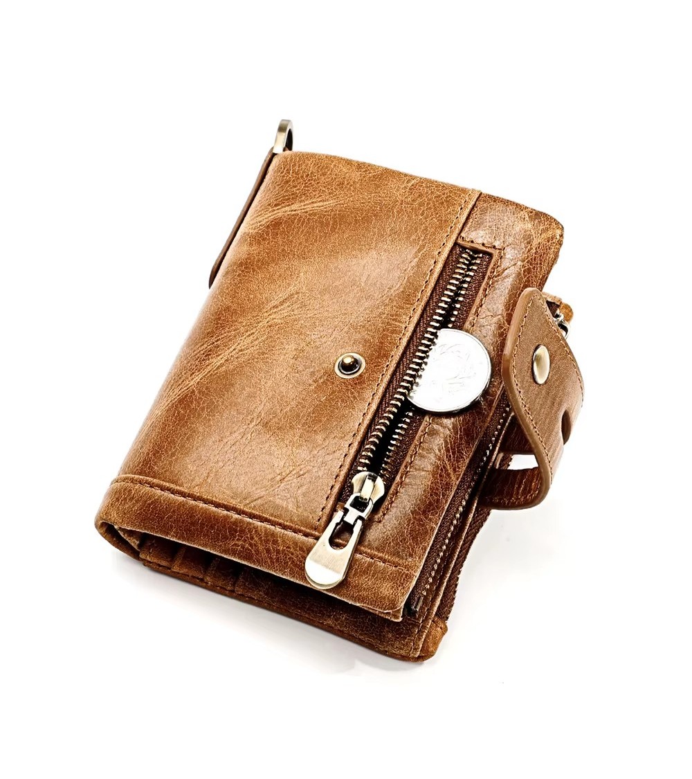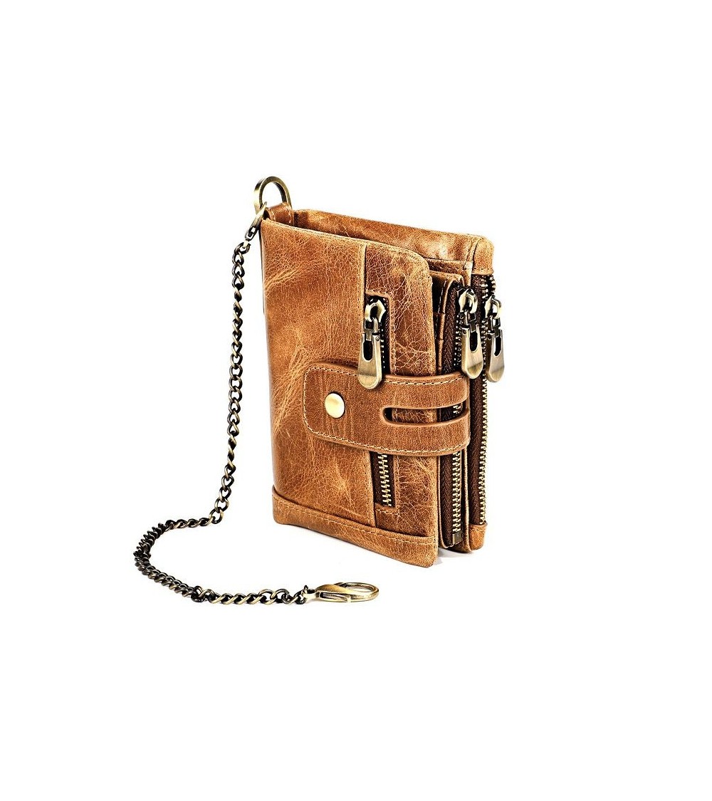 Portefeuille pour homme - Cuir veritable - chaîne antivol - Style Vintage