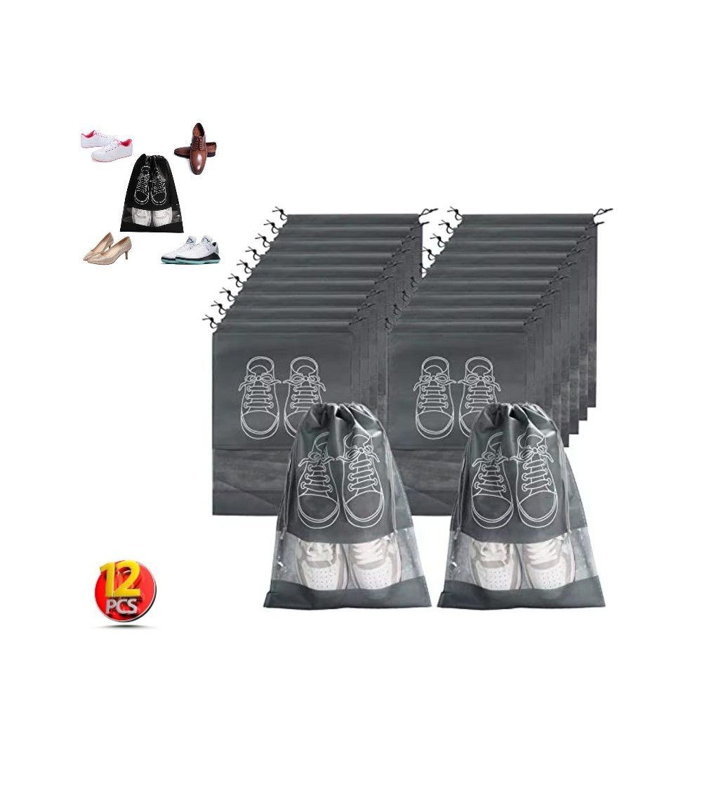 La taille des sacs à chaussures est de 44 x 32 cm (17,3 x 12,6 pouces), le paquet contient 12 sacs à chaussures étanches à la poussière, la taille est suffisante pour différentes utilisations. Un organisateur de chaussures pratique pour la maison ou en déplacement.