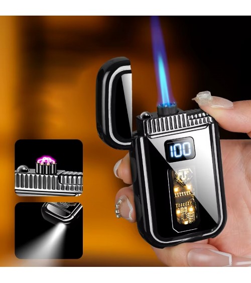 Combine parfaitement briquet torche au butane et briquet plasma en un seul. L'un est un briquet torche Jet bleu fort, qui doit être rempli de butane, ce mode feu vous donne une surface plus large qui n'a aucun problème pour allumer des objets de grande taille, l'autre est un briquet rechargeable utilisant un câble USB, Générées par l'électricité, cette source de chaleur unique offrant un allumage rapide et facile même dans les conditions les plus venteuses - coupe-vent et écologique.