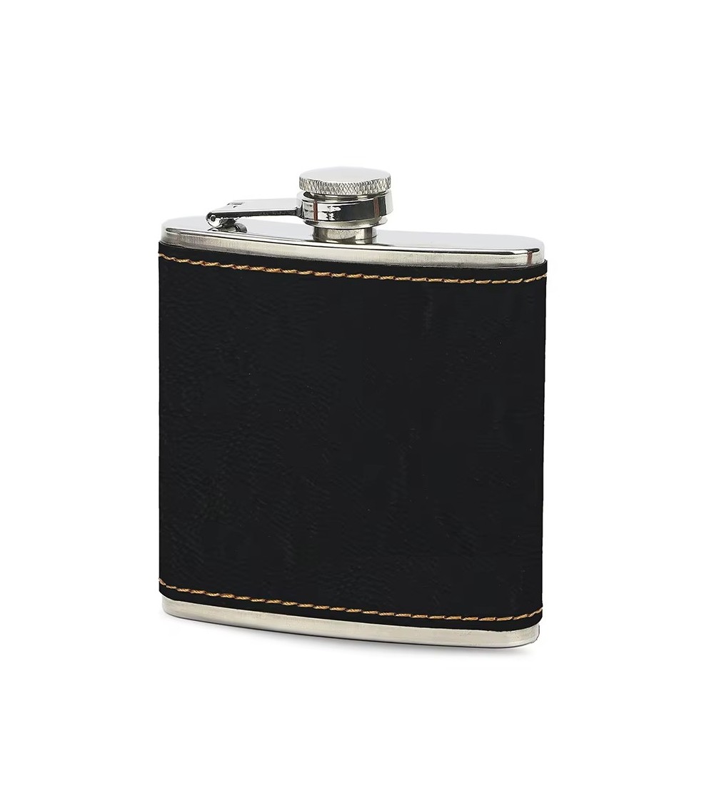 Flacon de Luxe - Gourde en acier inoxydable avec revêtement en cuir - Noir
