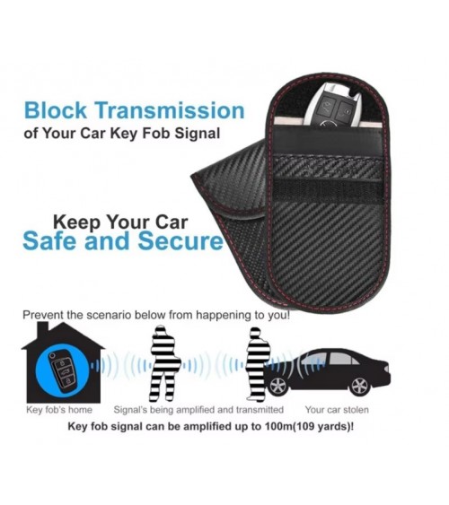 La tasca anteriore più piccola è antiradiazioni, ideale per conservare carte d'identità, carte bancarie, ecc. La tasca posteriore più grande blocca il segnale, ideale per i portachiavi dell'auto.