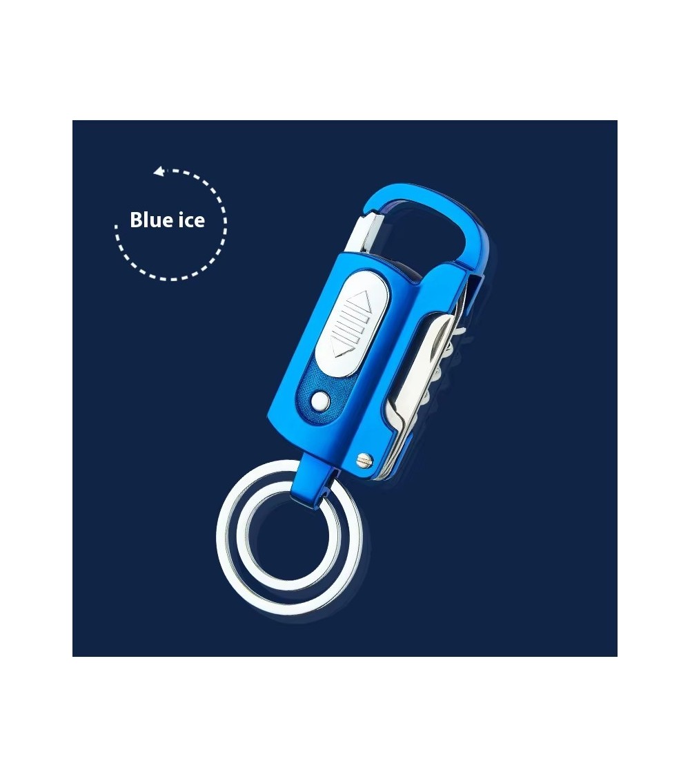 Accendino multifunzione 5 in 1, ricaricabile, antivento, portachiavi, torcia - blu
