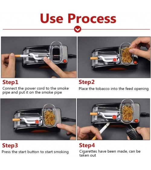 Questo dispositivo è alimentato da un adattatore incluso nella confezione ed è disponibile in due colori: blu e rosso. In questo modo potrete godervi sigarette personalizzate create a casa vostra, risparmiando denaro e avendo un controllo totale sulla qualità e sul gusto del tabacco.